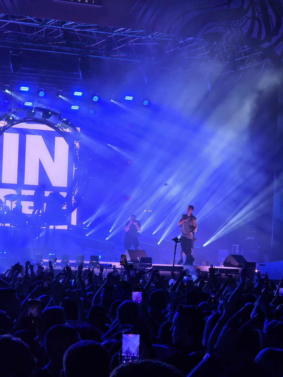 Первое впечатление от площадки Dubai Parks: даже и не мог представить на сколько она огромная, паркинг кажется бесконечным. Организовано отлично – очередей нет, хотя заявлено 250’000 человек. На регистрации просят оригинал документов и потом при входе по браслету сверяют с фото в системе. На территории продают алкоголь по браслетам, деньги нужны только для пополнения браслетов. Всё как в closeloop Karizma. При этом я видел детей – кто-то действительно взял с собой детей и прыгал с ними у сцены с Армином Ван Бюреном, позаботившись об ушах и надев наушники для снижения нагрузки.
